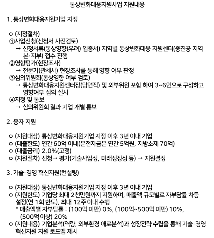 ÀÚ¼¼ÇÑ ³»¿ëÀº Åë»óº¯È´ëÀÀÁö¿ø¼¾ÅÍ(Áß¼Òº¥Ã³±â¾÷ÁøÈï°ø´Ü, ÀÌÇÏ ¡°ÁßÁø°ø¡±) ´©¸®Áý(www.kosmes.or.kr)¿¡¼ È®ÀÎÇÒ ¼ö ÀÖÀ¸¸ç, ÁßÁø°ø Åë»óº¯È´ëÀÀ»ç¾÷ÀüȯÆÀ ¹× Àü±¹ 34°³ Åë»óº¯È´ëÀÀÁö¿ø¼¾ÅÍ Áö¿ª º»¡¤ÁöºÎ¸¦ ÅëÇØ »ó´ã ¹× ½Åû °¡´ÉÇÏ´Ù.